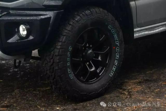 吉姆尼的后部安装了第三个轴,使用了正宗的铃木零件,并为其配备了全地形轮胎。车身还延长以容纳新轴,并制作了一对额外的轮拱,使其与原始形状一致。