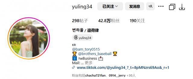 在 IG 平台上,有 42.8 万 LSP 关注边荷律。