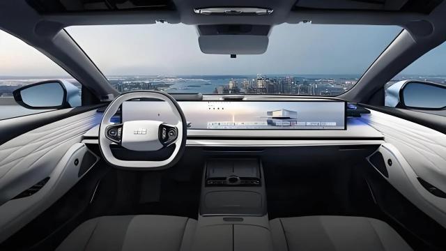 进入车内,2025 款吉利银河 E8 继续延续目前车型的造型,中控配置 45 英尺大屏充满科技感,但从网友的反馈来看,大家都喜欢这款带鱼屏的造型设计。新车机芯片配备高通骁龙。 8295 内置“银河无界座舱”和魅族芯片 Flyme OS,支持三指任务运行、地址运行、双向卫星通信等功能。