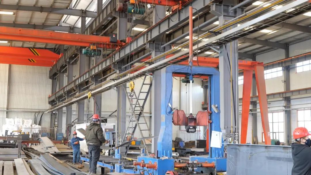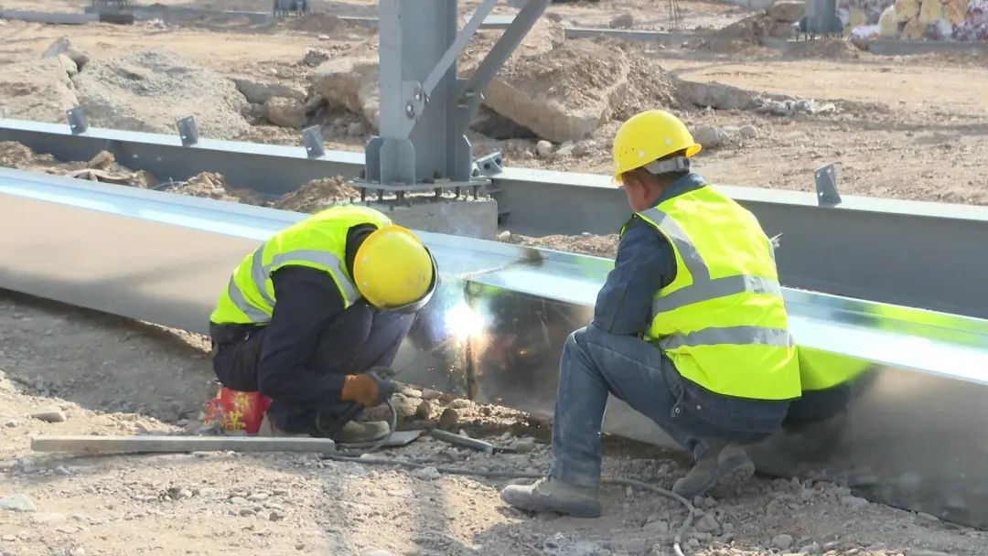 在甘肃成丰建设有限公司扩建年产2万吨装配式住宅系列产品生产线建设现场,门式起重机沿轨道来回滑行,将钢板、钢板、钢架等重物调到施工现场。经过建设者日夜奋战,项目的钢结构框架已经建成,施工人员正在进行焊接、吊装等后续工作。