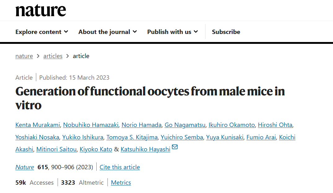 林克彦和他的同事于2023年3月在Nature上发表了文章的标题截图。