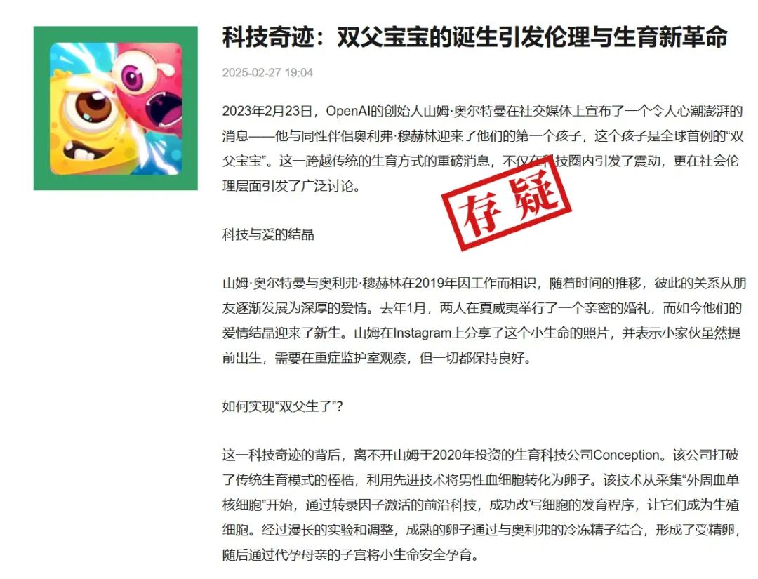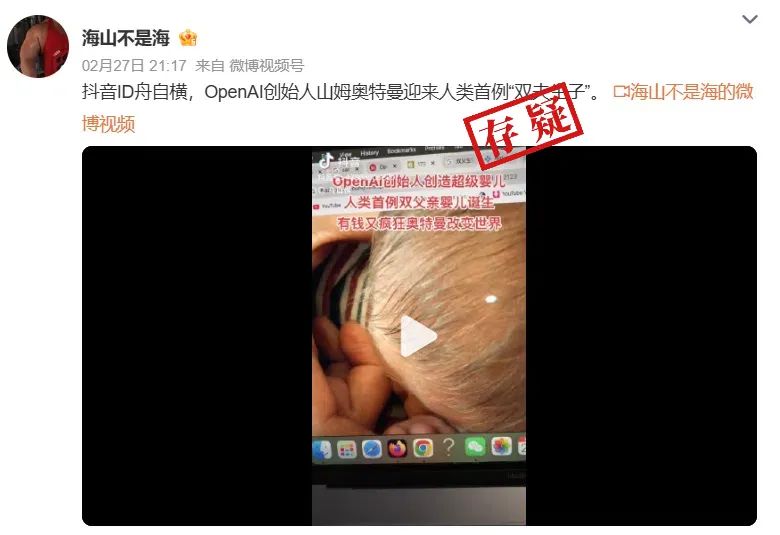 明查|OpenAI创始人生孩子,是世界上第一个“双父生育”?