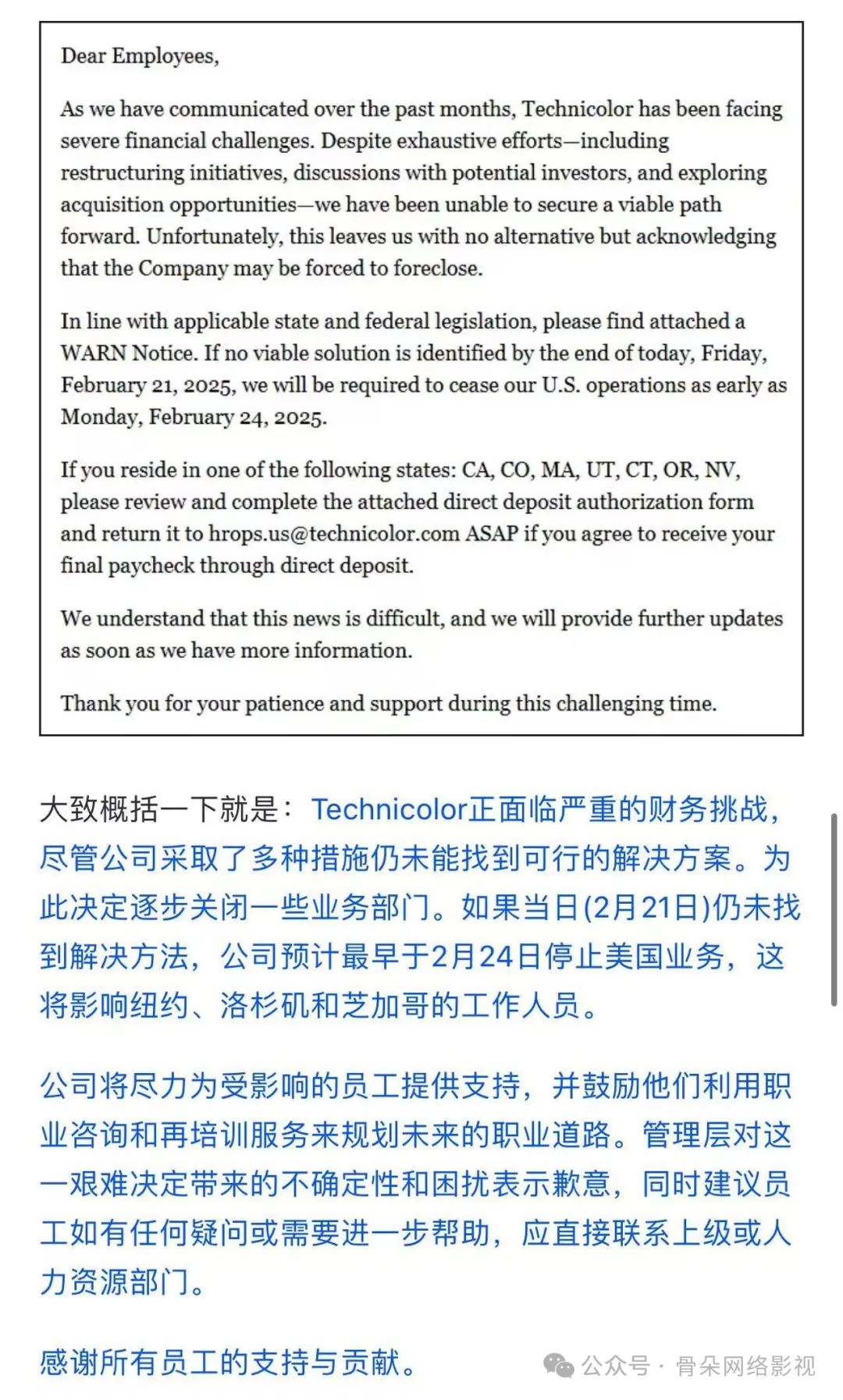 婷婷在Technicolor子公司工作,告诉骨朵:“上个星期五,我收到了总部破产的邮件,那时候我和同事都不敢相信,没想到世界知名的大公司也能说倒倒。”
