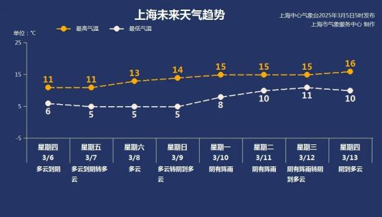 今天(3月5日)进入二十四节气中的“刺痛”。申城白天云系较多,阴天部分地区有短时小雨,北至西北风4。~5级阵风6级,早间气温多为5级。~在7℃周围,预计今天白天最高气温为10℃,相对湿度为90%。~60%,体验仍然偏湿。