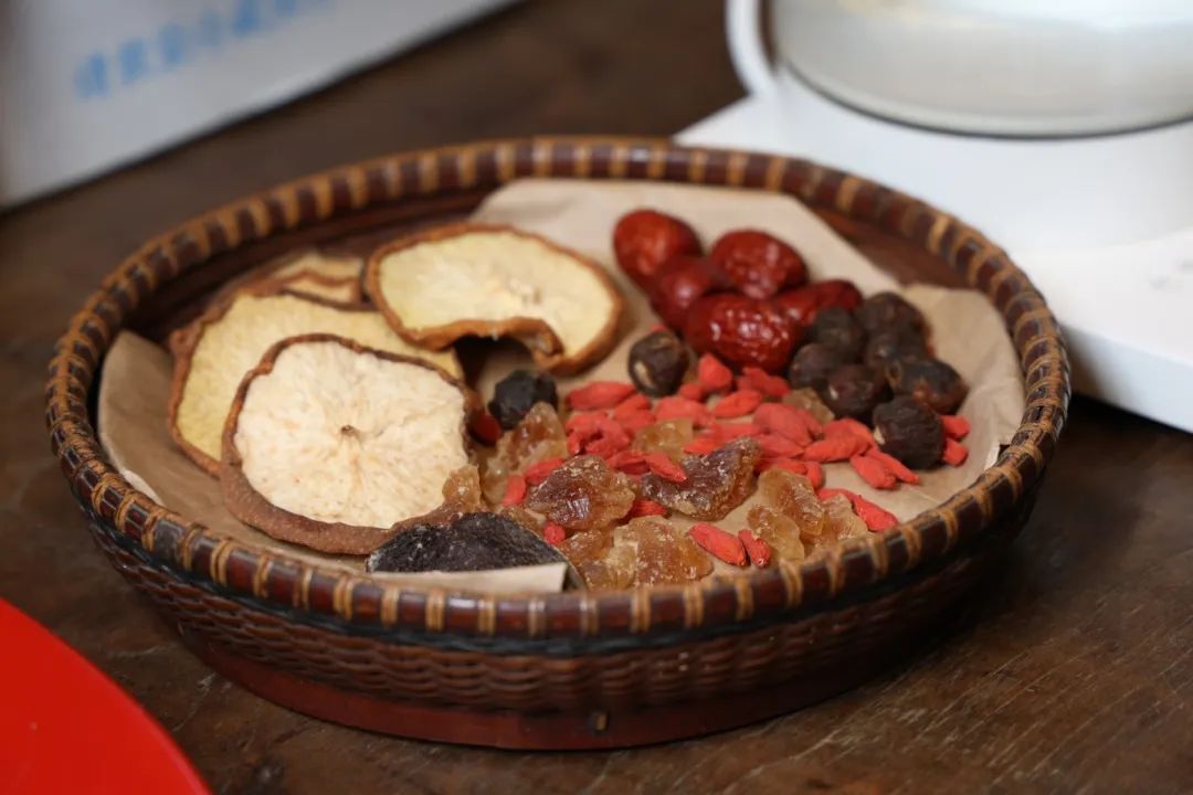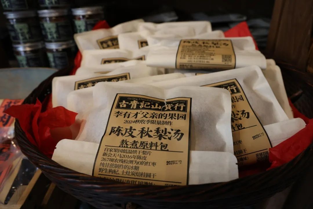 陈皮梨汤以梨、枣、桂圆、枸杞、陈皮、老冰糖为主。梨汤之所以好吃,是因为原料纯正,梨是自己的果园。秋季成熟后收获,自然风干,所以这个汤包有一定的时效性,用完后就没有原料了。因为他家的梨是自然生长的,没有避孕套,收获过程中皮肤很容易花掉,表面看起来很丑,但是每年7月到冬天,四种梨让很多老客户期待已久。陈皮则选用了近10年新会老陈皮,老冰糖也是按照古代的方法熬制而成,不添加其它物质。与此同时,这款汤包的比例经过多次改进,口感丰富,层次分明。