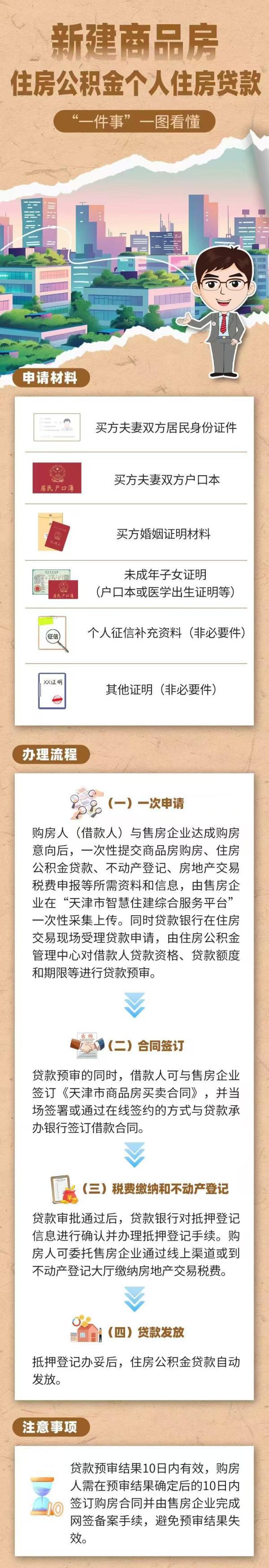 一图读懂天津新建商品房公积金贷款购房“一件事”