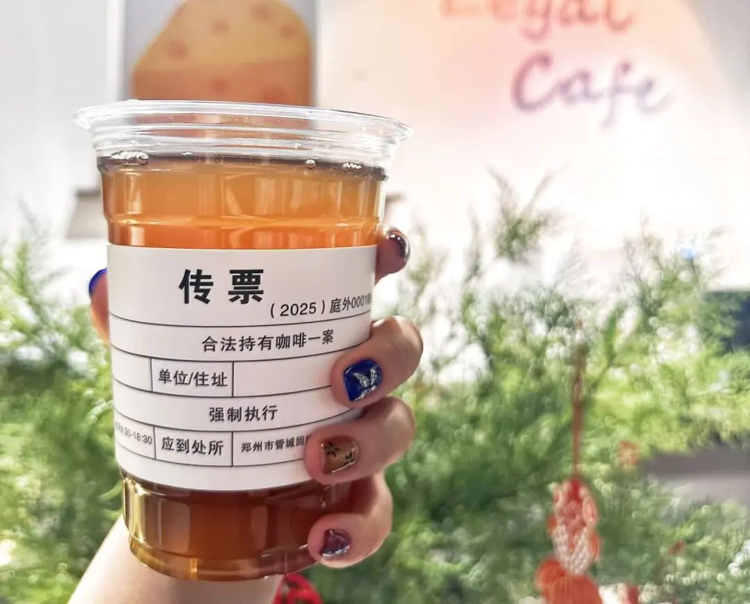 店内“法制味道”十足:咖啡杯套设计成“传票”风格,以“合法拥有咖啡案”为由。;发票备注声明“认吃认喝”;装满咖啡的纸袋上盖着“无罪”的印章,充满了乐趣。