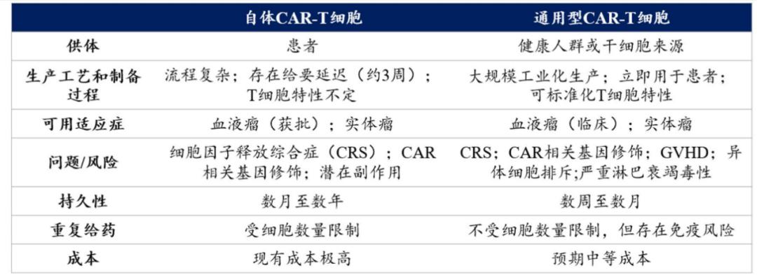 图片:自己CAR-T和通用CAR-T的区别,来源:东吴证券