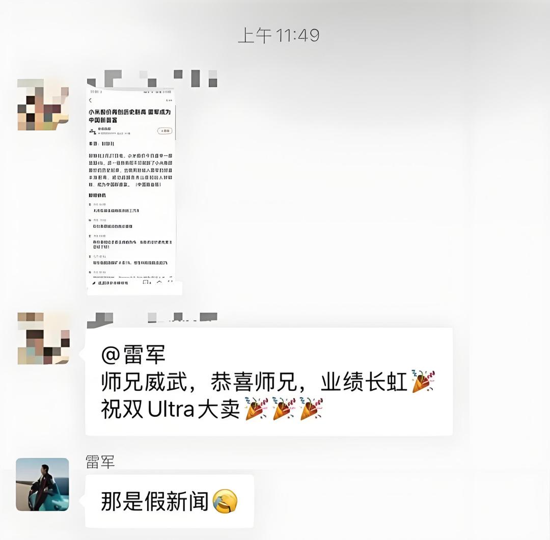 这个消息引起热议后不久,雷军在武汉大学校友群的演讲截图就流出来了,他对这个消息的回应简明扼要:“这是一个假消息”,表现出对富人称号的回避态度。