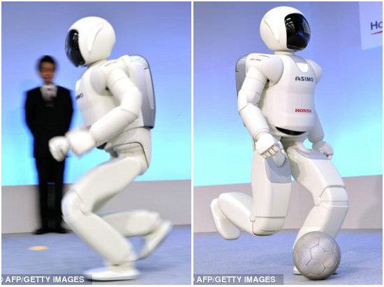 与奥巴马特别会见的本田ASIMO起源于2000年。不仅可以踢足球,还可以小步跑,单脚跳跃,上下楼梯。