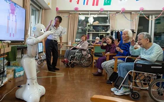 Pepper在东京新富疗养院担任护士,不仅可以为老人演奏伴舞,还可以一起做体操。