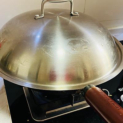 6、加入 200ml 水,盖锅盖炖煮 3 分钟。