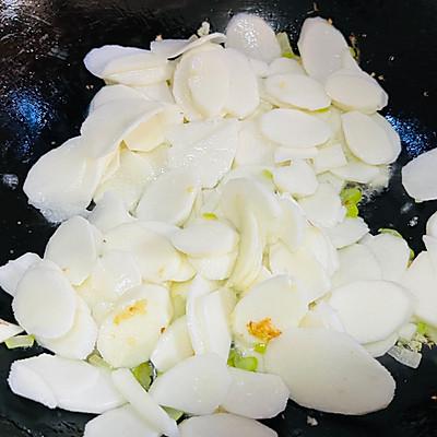 5、放入山药片翻炒。