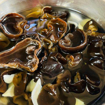 3、木耳,百合,泡软备用。