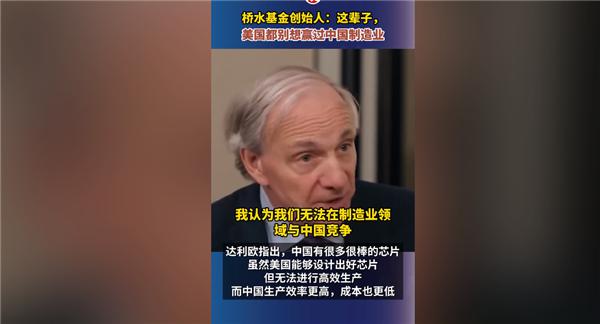 桥水基金创始人:美国这辈子都不想赢中国制造业。 后者可以制造出好的芯片