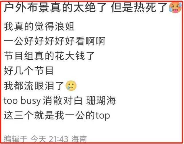 举例来说,这次一公是在海南陵水录制的,当天中午气温已经达到。 31 °,而且观众正好需要在下午进入。