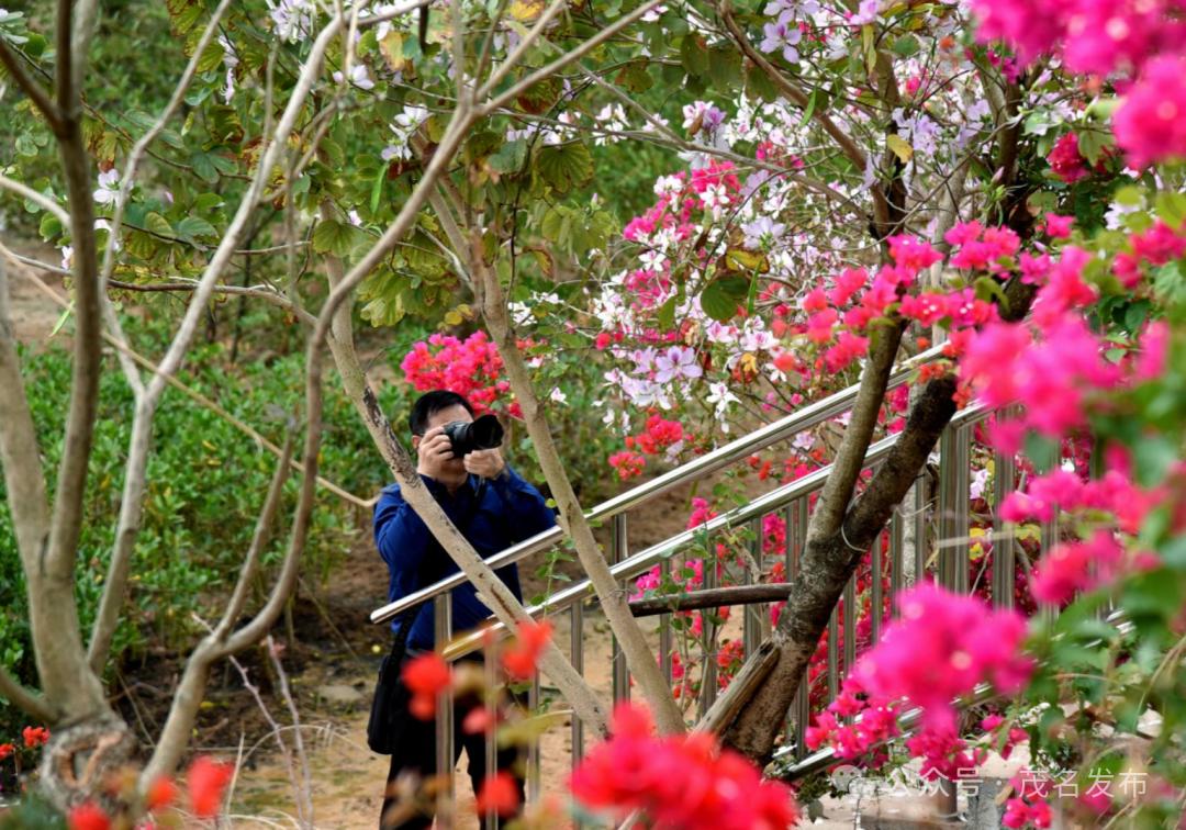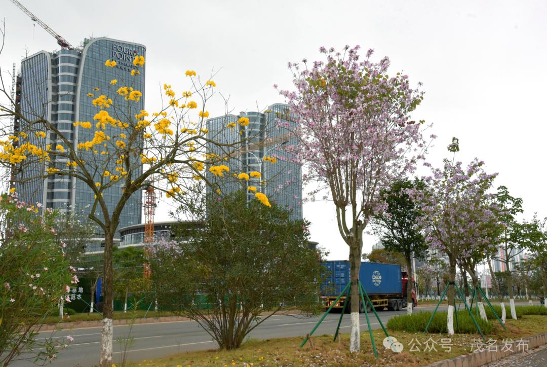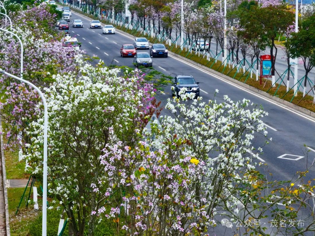 贯穿电白南北的主干道包茂大道,曾经是一个单一的交通枢纽。从2023年开始,电白区启动“绿美电白生态建设”行动,将其列为“一路一景”示范工程,以宫粉紫荆为主角,结合凤凰木、蓝花楹等盛开的树木,形成“春赏紫荆、夏观凤凰、秋赏蓝色对象”的四季景观。