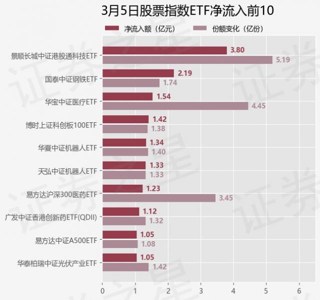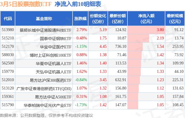 当天有 206 只股票指数 ETF 资金净流入出现,其中景顺长城中证港股通科技净流入排名第一。 ETF(513980),份额增加 5.19 十亿份,净流入额为 3.8 亿元。