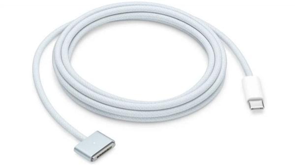 为保持数据线的美观一致性,苹果推出了配套的“浅蓝色” USB-C 转 MagSafe 3 连接线(2 米饭),国行定价 379 元,而 USB-C 另外需要购买电源适配器(当电池充电时,在数据线上 LED 灯光会变成棕色,充满电后会变成绿色。)