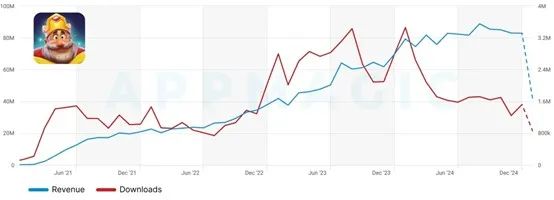 另外,上述完成融资的公司虽然大多在种子轮和 A 轮子,但是和许多游戏投资是投资团队还是有些不同,有很多产品已经跑出了一些成绩,有数据支持。比如 Agave Games 的「Find The Cat」DAU 在 2024 年 11 月就突破 100 万大关,Grand Games 的「Magic Sort!」在 2025 年 1 月总流水已成为混合休闲类游戏。 Top 16,近期 30 天空流水已经突破 200 万美金。