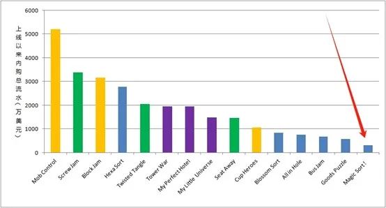 再比如完成 3000 万美金 A 轮融资的 Grand Games,公司的分类游戏「Magic Sort」基于新冠肺炎疫情奇迹爆红的超休素材“分颜料水” IAP 变现跑出成绩。