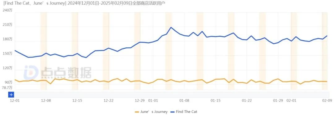 180万-200万区间 | 资料来源:点点资料 「Find the Cat」DAU 保持在