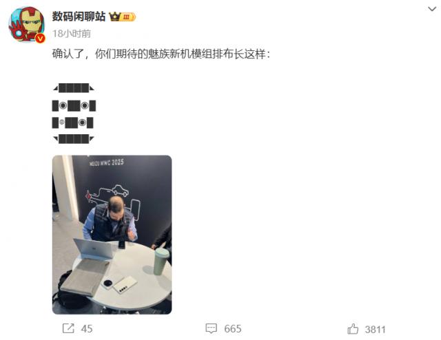 3 月 4 日本,著名的数码博主 @数码闲聊站 一张照片在微博上曝光。根据它的说法,照片是拍摄的。 MWC25 展览的魅族展位。他配文“大家期待的魅族新模块就是这样”,并且巧妙地用字符拼出了一个八边形的三摄模块。