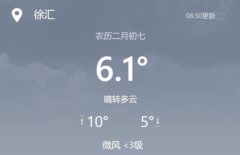 申城今天(3月6日)早上主要是阴天到阴天,部分地区有短期小雨,下午雨停止多云到阴天。早上气温开始,城市在6℃周围,郊区在4~7℃之间。下午,阳光可能会出现很短的时间,最高气温可能会上升到11℃左右。北风4~5级阵风6级,临江沿海城市5级阵风6~7级。相对湿度为90%~50%。体验还是比较冷的。
