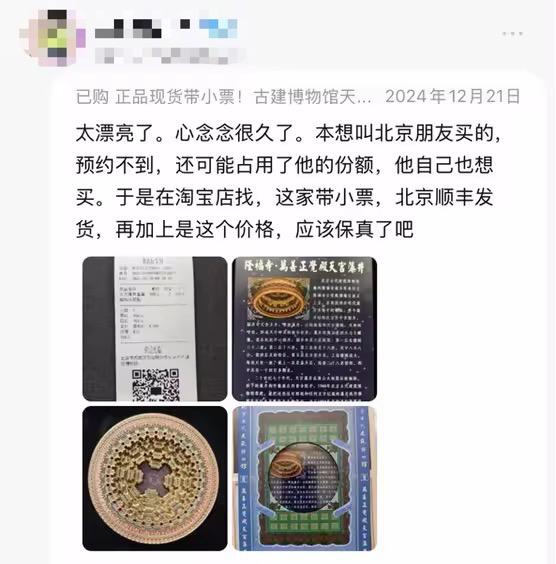 “我在景区玩的时候,担心给朋友挑什么礼物,但是朋友主动问我能不能买到天宫藻井冰箱贴。了解后才知道,想提前三天‘抢号’买这个冰箱贴,限购。”回忆起在北京的旅行经历,90后顾客思静对一个小冰箱贴这么受欢迎感到惊讶。“最后朋友花了228块钱去淘宝店买”。