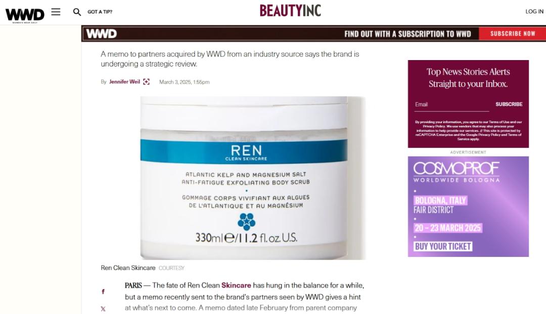 根据上述报道,联合利华在2月下旬的一份备忘录中对品牌合作伙伴发表了讲话,概述了REN所谓的“重要发展”。
