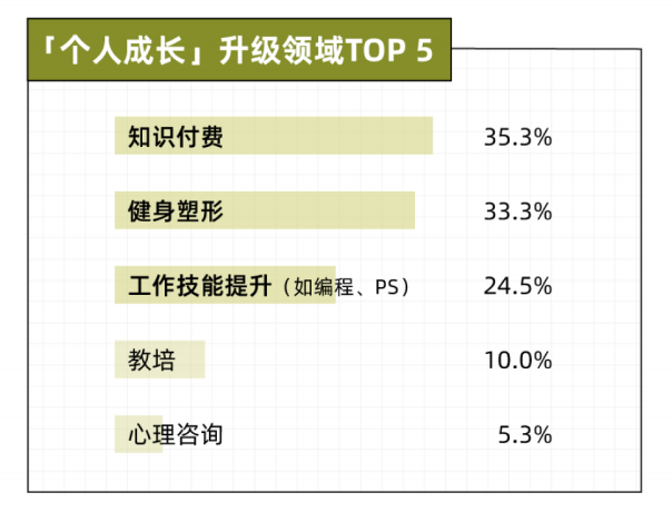 在提升自己的行业,知识支付已经成为最昂贵的项目,这也与2024年AIGC在普通人中的大规模普及有关,相关教程也在蓬勃发展。当然,在丰富精神层面的同时,健身塑形也是大家热衷于消费的一部分,我们在投资自己方面绝对不含糊。