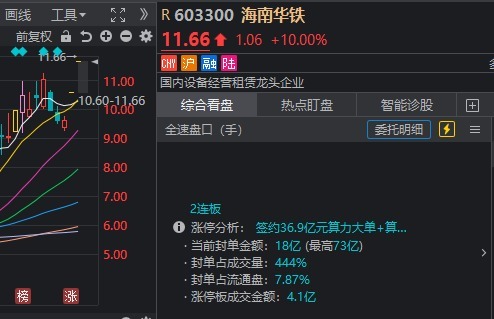 这个星期二,海南华铁公布了36.9亿元的算率,现在已经走出了两个板块。
