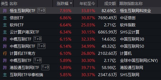同一天起飞的恒生互联网ETF和信创ETF。