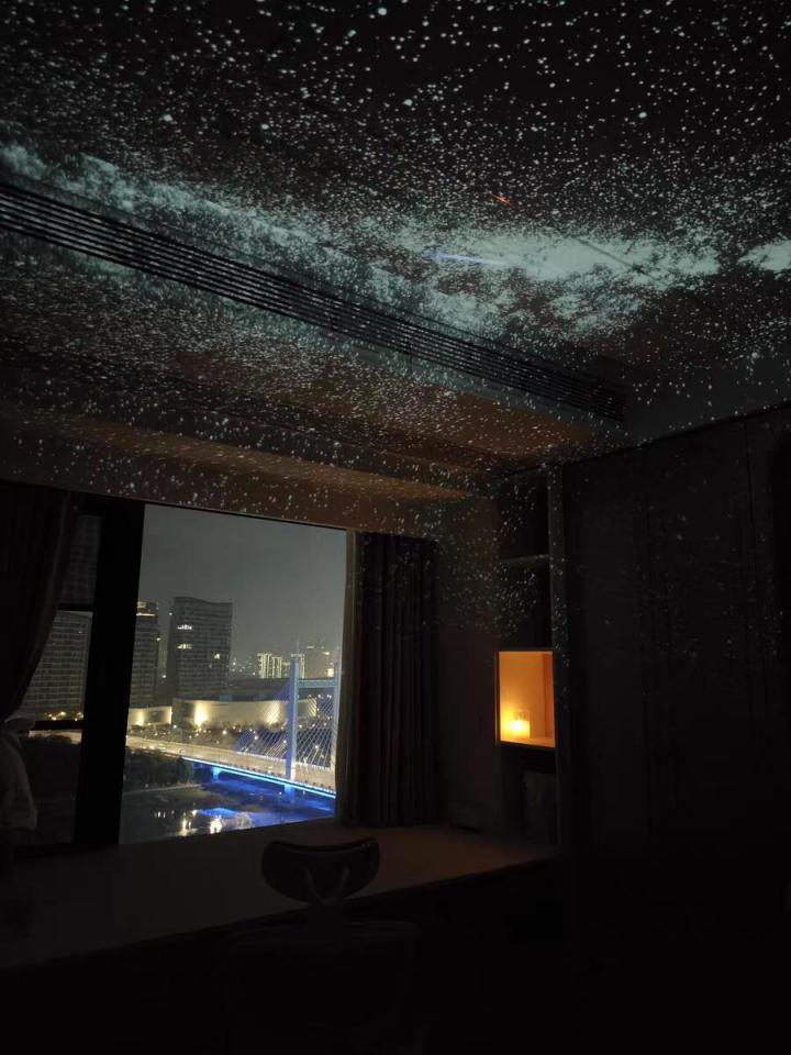 在治愈室内,客户可以要求AI根据实际情况投射下一个治愈环境,包括山川、森林小屋、月夜星空等环境,并伴有环境音效。