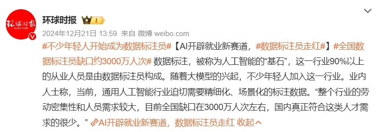 与芯片研发、模型建设等岗位相比,数据标注员也成为文科生进入AI领域的好时机,因为门槛较低。。00后的小七(化名)说:“我身边很多中文系的同学毕业后都去做数据标记师。