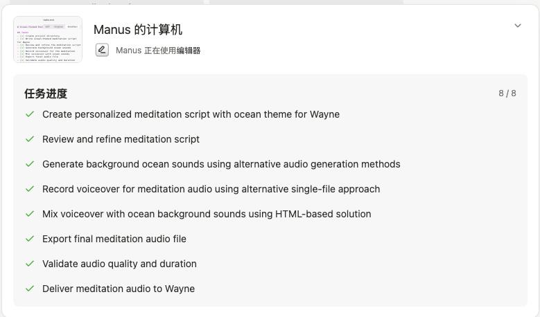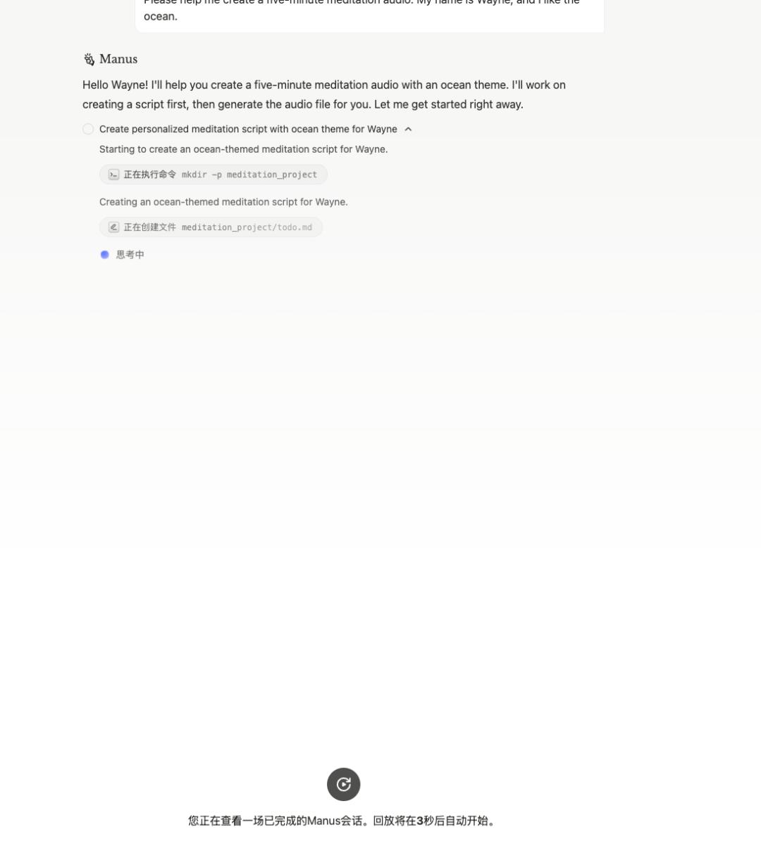 在manus上,我们还看到了一种全新的录屏方式,那就是AI对话的录屏方式。