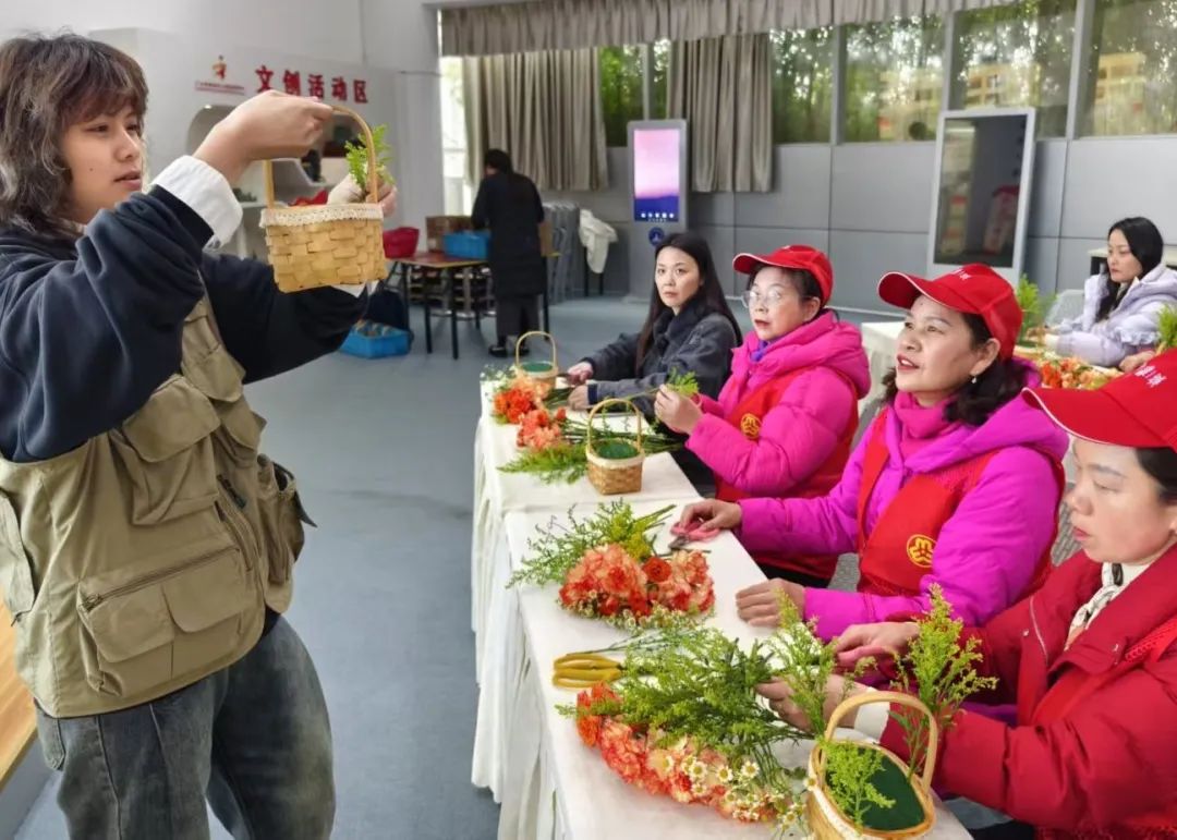 在花店老师的指导下,“娘娘”们充分发挥了自己的创造力和想象力,认真修剪枝叶,构思造型,做出了一篮篮独特的花艺作品,不仅展现了不同的活力,也展现了女志愿者对美的不懈追求和对生活的无限热爱。