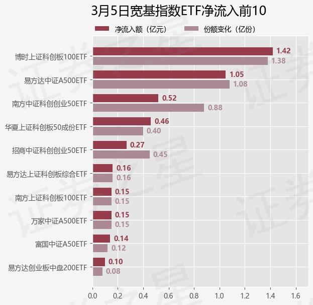 三月五日,宽基指数ETF净流出107.04亿元