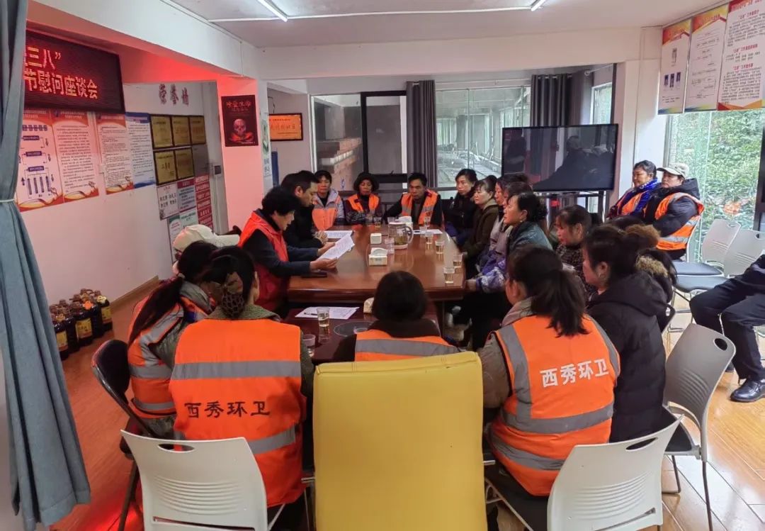 2025年3月6日上午,在第115个“3月8日”国际妇女节之际,马槽社区铠甲山居委会精心组织了一场关爱环卫一线女职工的温馨慰问活动,特邀西秀区环卫处东关环卫所12名女职工代表参加。