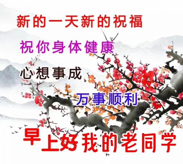 伴随着微风,祝福就这样来了。告别昨晚的喧嚣,早晨有自己的兴奋。在匆忙的脚步中,在含苞待放的花朵中,在缠绵的晨风中,在发芽的柳丝中,问候将无处不在。老同学,早上好!