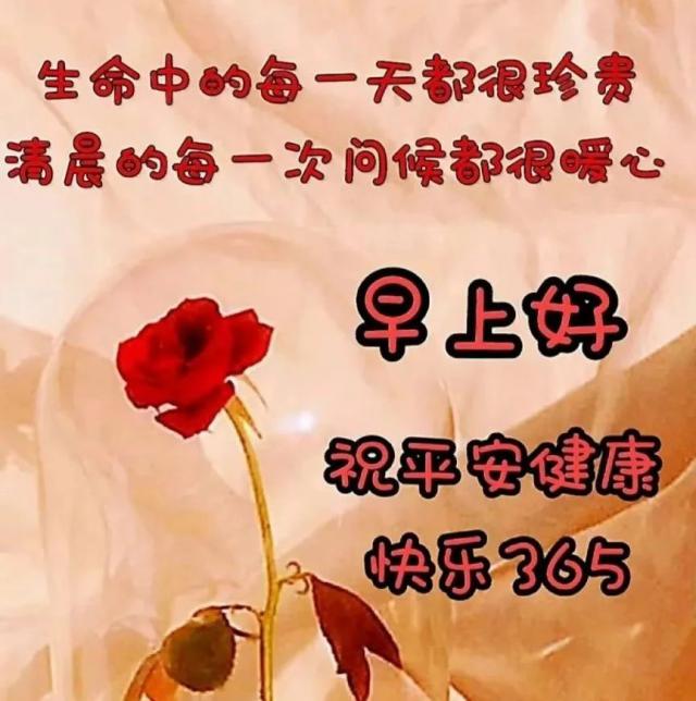 祝福有爱,问候有心;微笑着迎接今天,祝福明天。虽然聚会并不总是存在的,但每天的思念都是悠闲的;虽然面试不经常见面,但每天的问候都会温暖我们的心。珍惜这个命运就像大海一样深,记住这种感觉就像葡萄酒一样浓。愿我们永远阳光明媚,快乐,快乐!健康的同行!早上好!