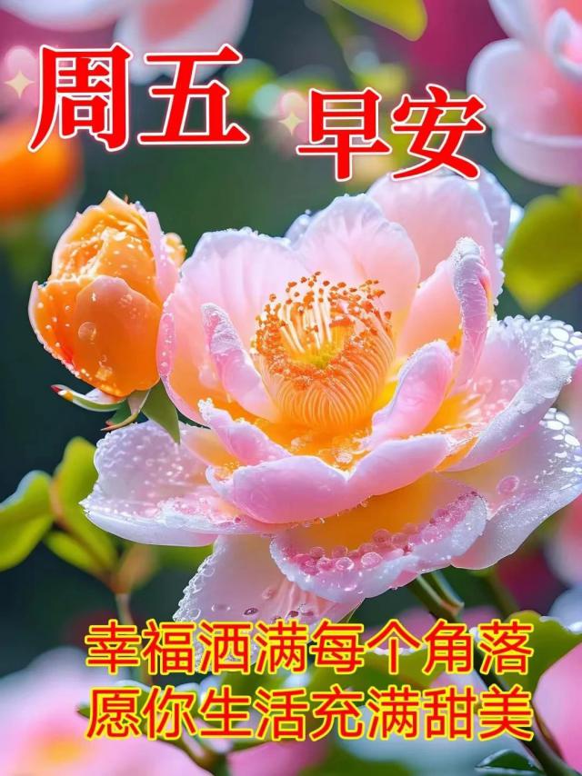 星期五早上好!早上又来了,给你打个招呼。愿这份亲切的问候带来温暖和美好。让快乐的心情每天陪伴着你,让平安和好运永远围绕着你!