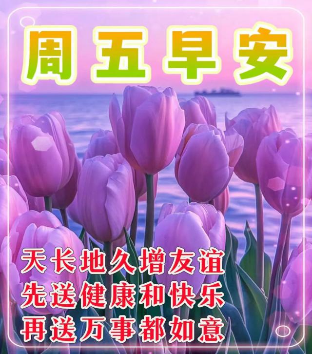 早上起床,有人祝福你,你可以有一天快乐;日落,有人关心,你可以一夜安宁。愿我们的祝福永远存在!健康永远存在!幸福永远存在!星期五,早上好!