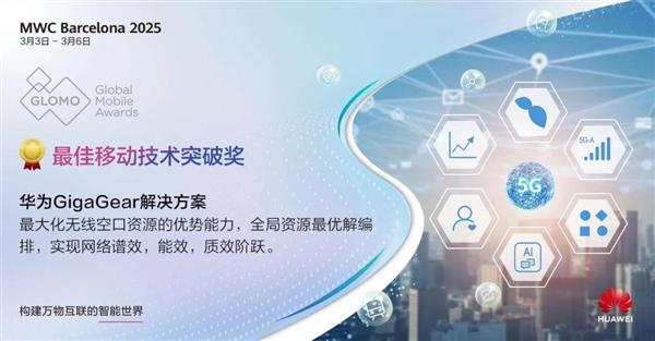 快科技 3 月 7 日消息,在 MWC25 在巴塞罗那展期间,华为无线获得8个重量级。 GLOMO 奖项。