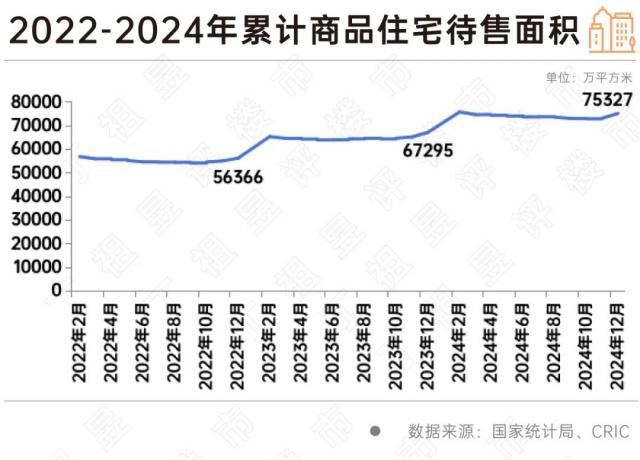 从克尔瑞的数据来看, 2022 2008年以来,商品房待售面积不断增加。截至 2024 年底,商品房待售面积仍然存在 75327 万㎡,到目前为止,全国的库存面积还没有找到下降的拐点。