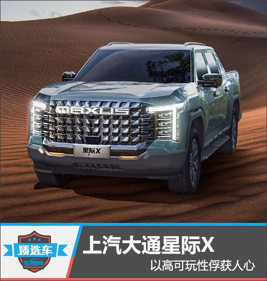 上汽大通星际 X 是本系列中定位最高的车型,采用非承载式车身结构,动力方面配备上汽。 π Plus 2.5T 柴油机,兼顾实用性和越野通过性。从工具车到流行文化的代表,皮卡在美国市场的受欢迎程度一直很高。虽然在中国的知名度仍然很低,但许多消费者仍然谈论它被赋予的游戏特性。上汽大通星际星际星际大通作为一款好用又好玩的硬核皮卡。 X 到底能不能得到更多消费者的喜爱?本期《质选车》将为您详细分析。