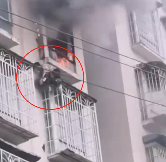 小心!“餐桌炸弹”家爆炸引火,男子蹲在3楼窗台上求生。