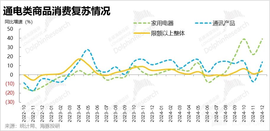 其中,从上季度开始,直接受益于国补的通电类产品收益 跳跃性上升到2.7% 15.8%,增长最强。而且一般商品虽然没有国补,但是通电产品溢出的引流效果下,一般商品零售业的增长也是从上一季开始的。 8% 小幅提高到 11%。