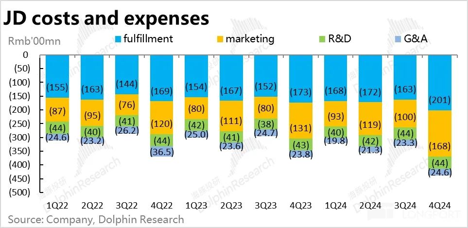 不过费用方面,去年的营销费用由去年支付 130 亿明显增加到这个季节 168 与市场预测相比,亿,高于约定。 19 亿。可见强大的收入增长仍然伴随着明显的营销支出扩张。,从去年到去年,电子商务行业的竞争激励环境变化。 4Q 没有明显的改善。