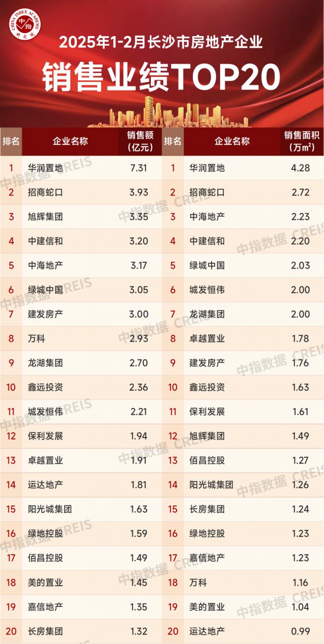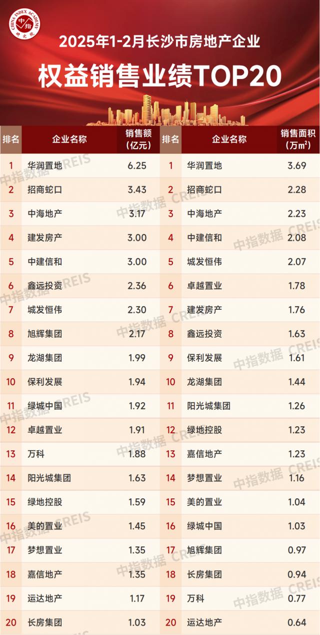 特别声明:房地产企业销售数据统计是 2025 年 1 月 1 日 -2 月 28 日销售的商品房为统计口径,主要依据中指数据 CREIS(点击查看)长沙市销售统计数据,参考企业提供的相关数据,经研究小组严格审核纳入统计,涉及合资项目,销售数据纳入交易公司。本报告仅供参考,研究小组对报告及其内容造成的任何直接或间接损失不承担责任。